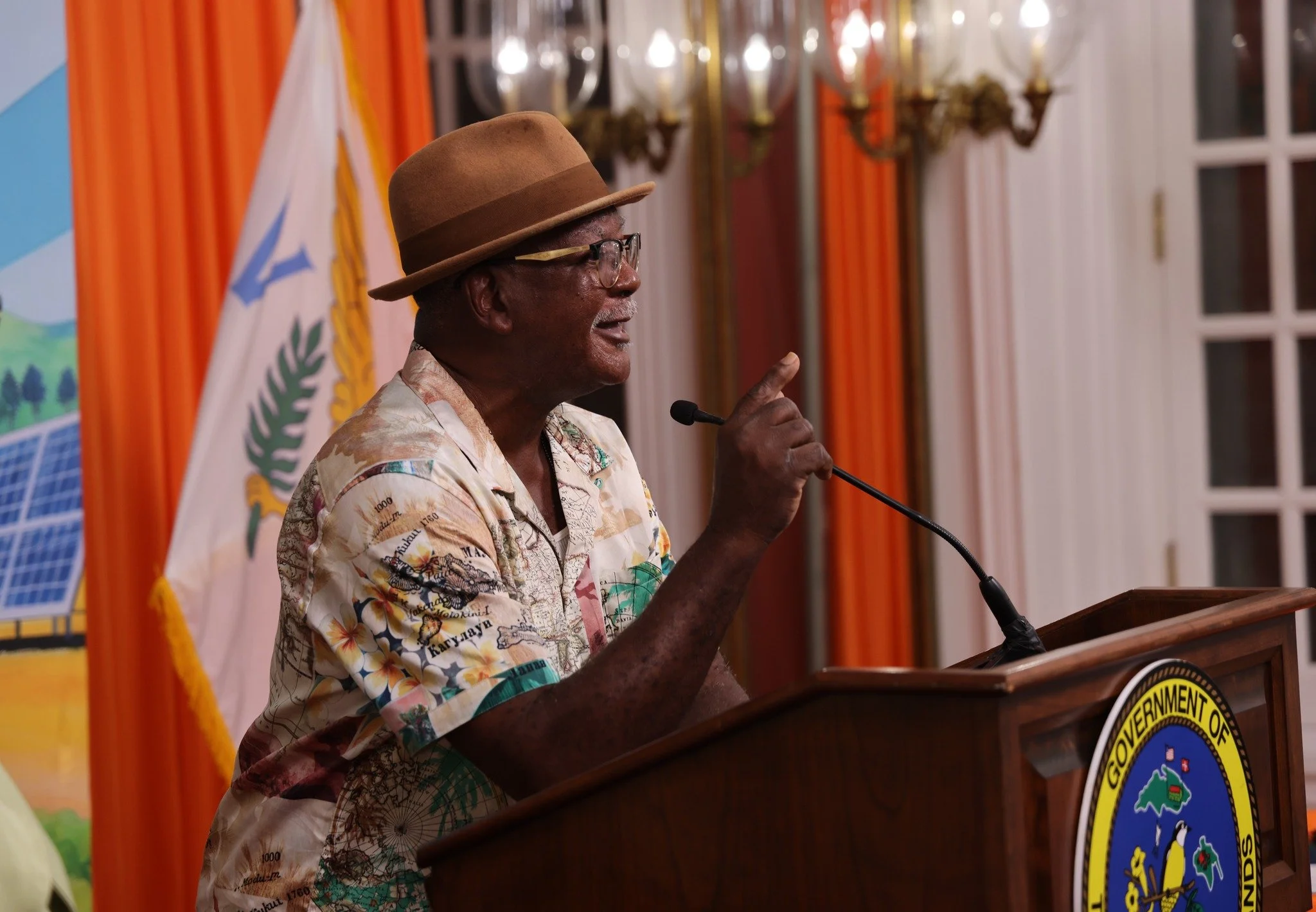 Former USVI Agriculture Commissioner Dr. Arthur C. Petersen, Jr., gives remarks during a ceremony held at Government House on Feb. 12, where he and other honorees were recognized for their contributions to the growth of agriculture and Agrifest in the territory. Photo Credit: Government House - US Virgin Islands/Facebook.